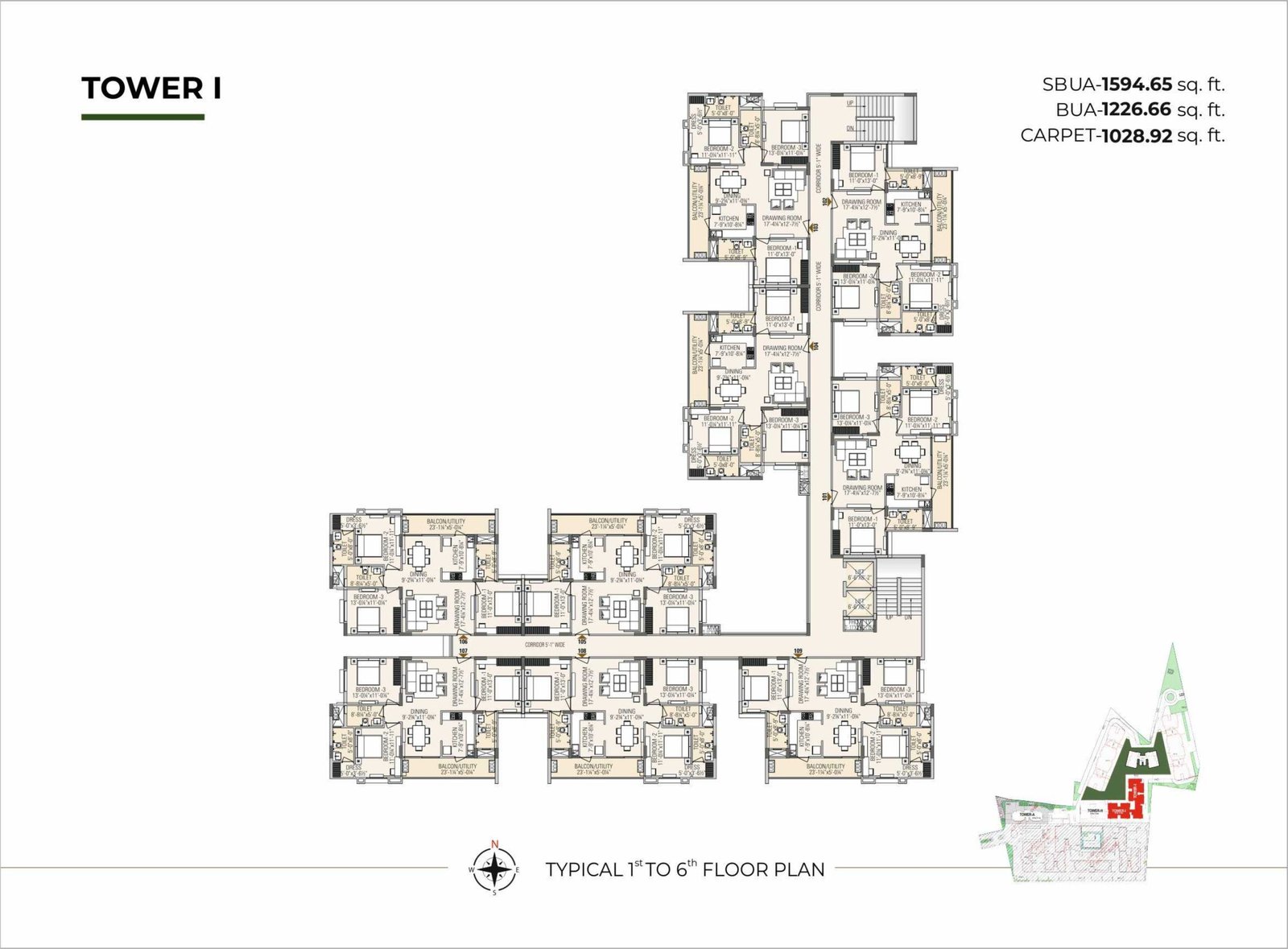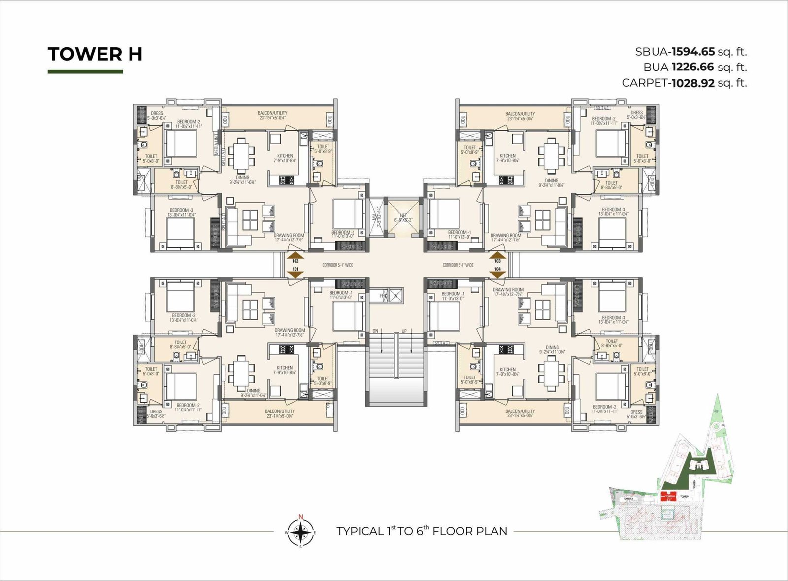 - Provision for AC – Ear Marked position for Split AC in Drawing Room/Bedroom Ear Marked position for outdoor unit